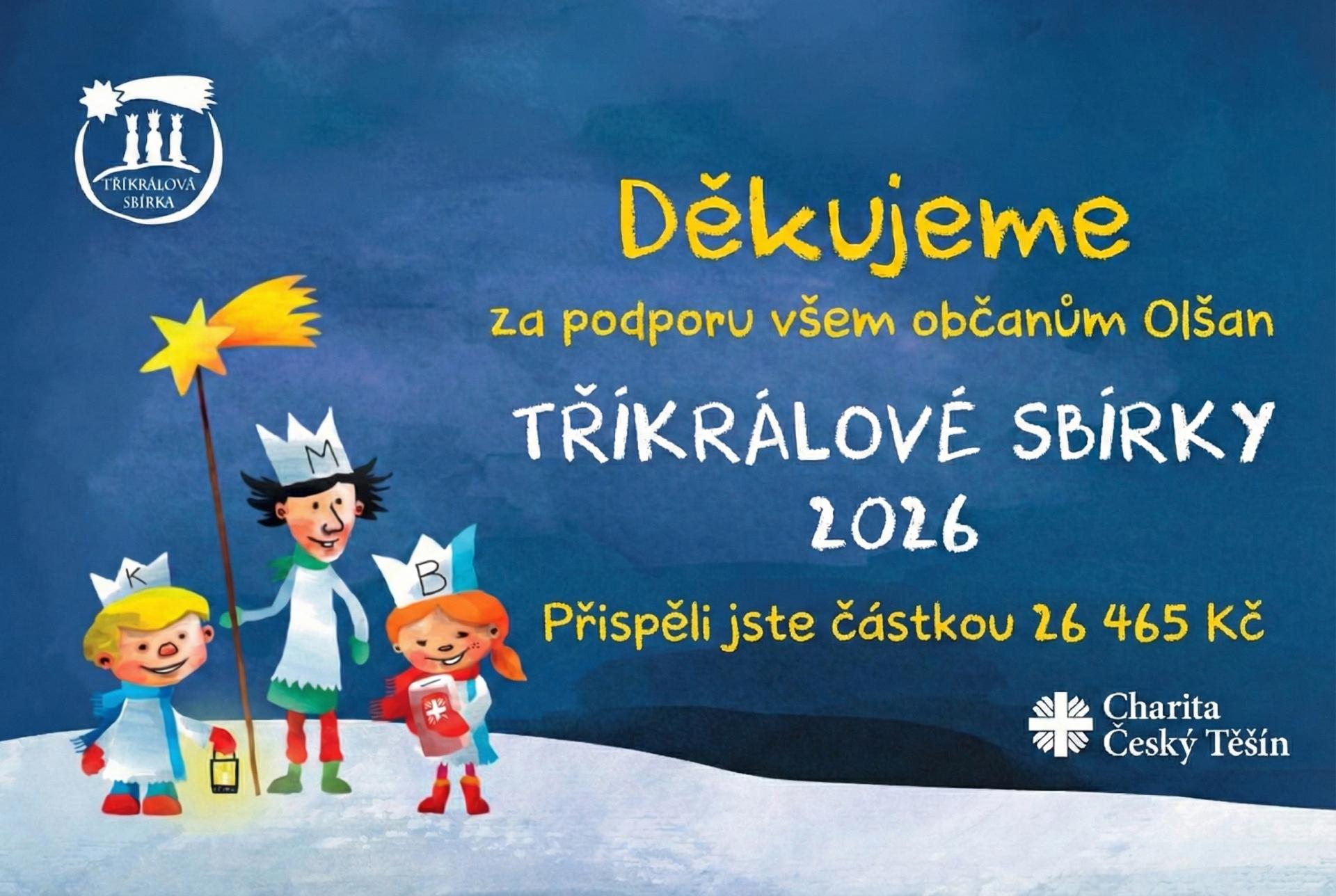 Výtěžek z Tříkrálové sbírky v Olšanech