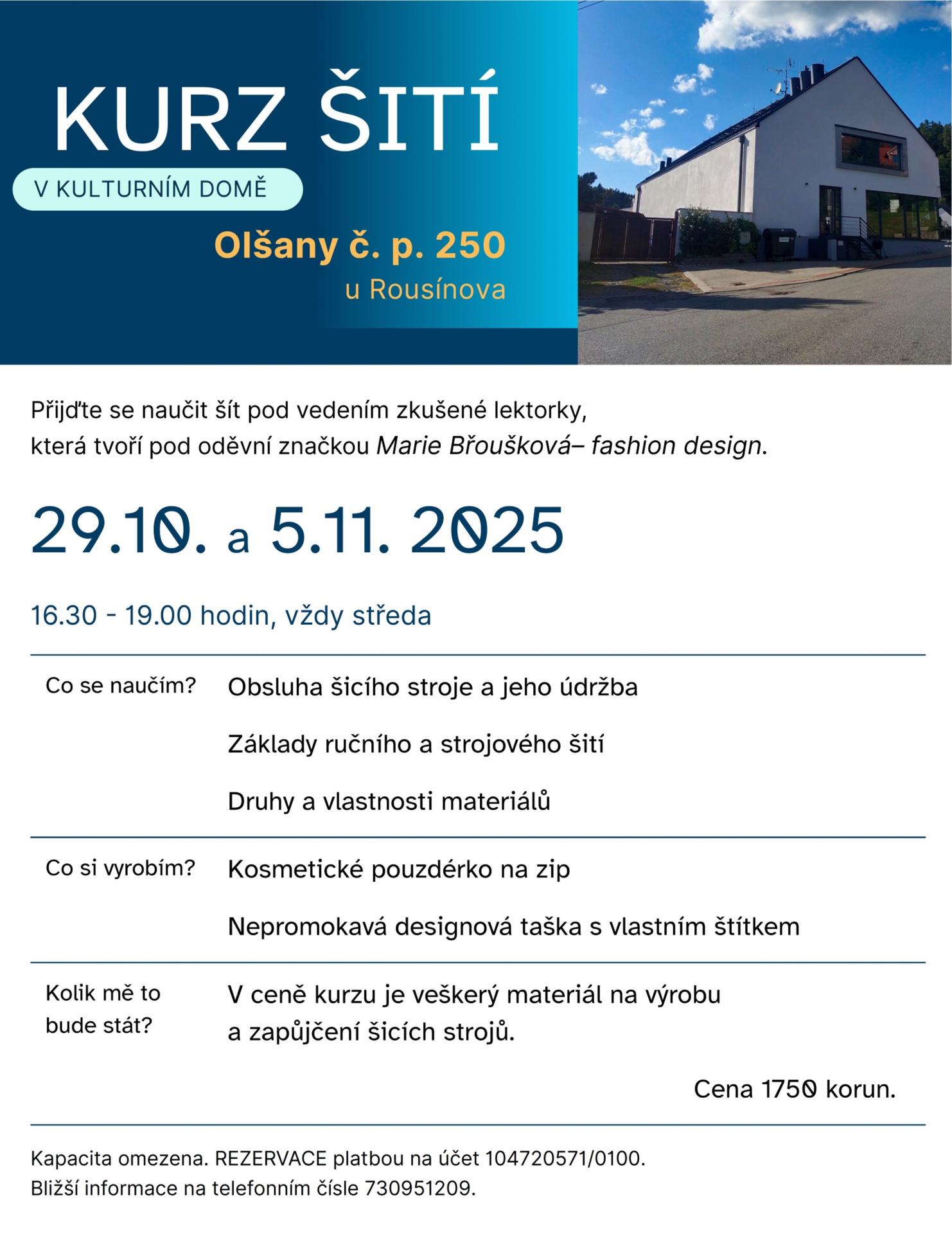 dvoudenní kurz šití se zkušenou lektorkou a přímo v Olšanech