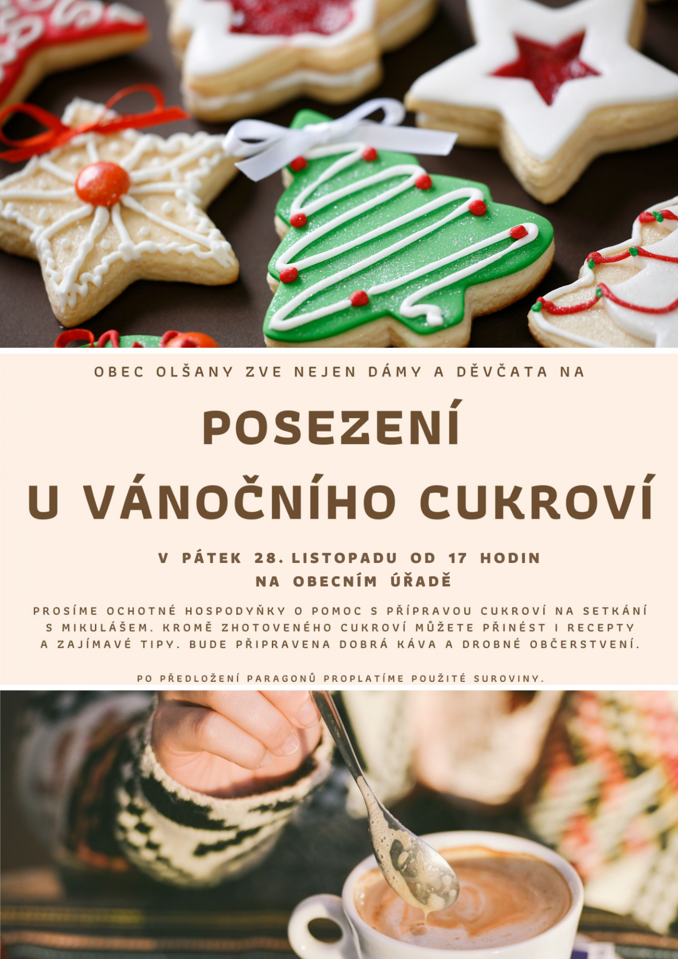 každoročně prosíme šikovné hospodyňky či cukrářky a cukráře o pomoc s přípravou cukroví na setkání s Mikulášem